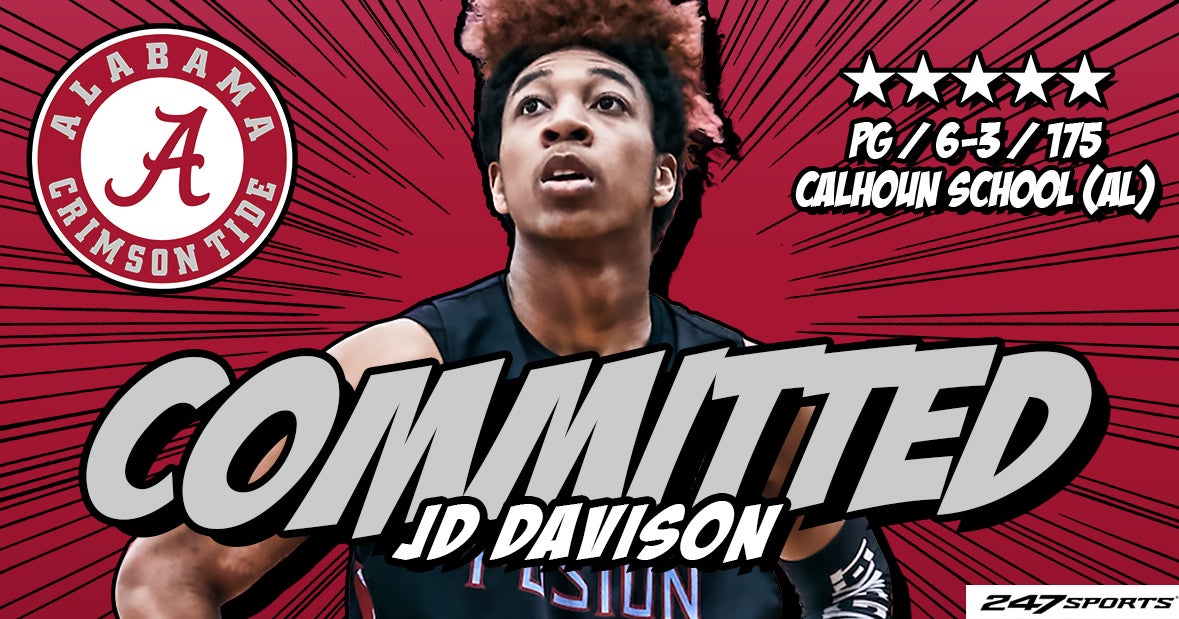 Five-star point guard JD Davison is rolling with the Crimson Tide. The nation’s No. 9-ranked overall player, per the 247Sports Composite Team Recruiting Rankings, committed to Alabama on Saturday evening over Auburn, Kansas, Kentucky, LSU, Memphis, and Michigan. Davison is commitment No. 2 for Nate Oats and company in the last six days.